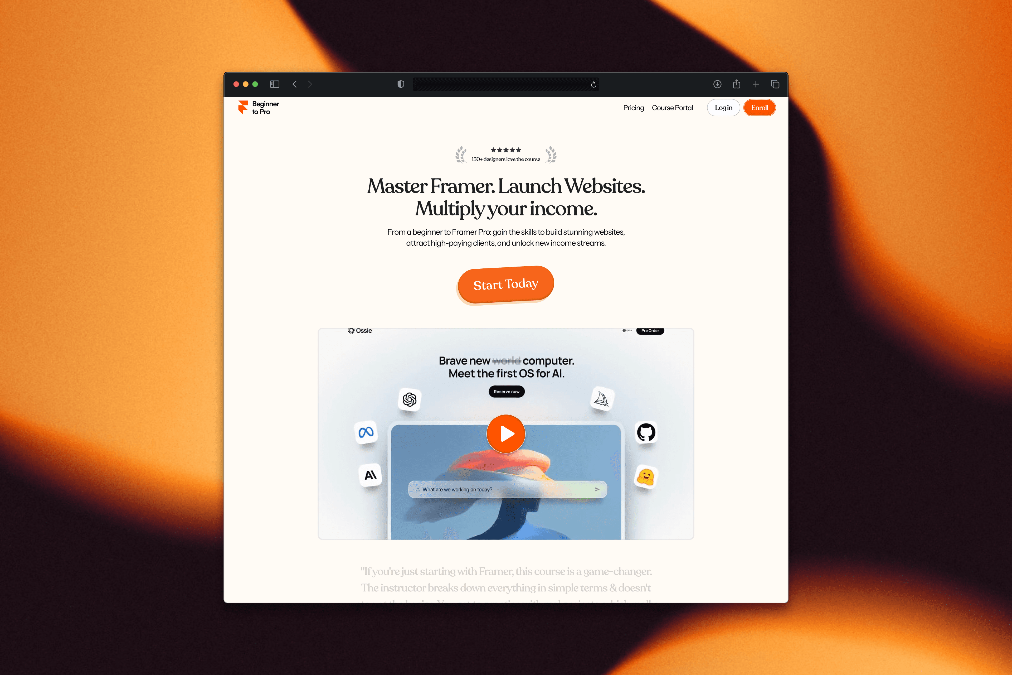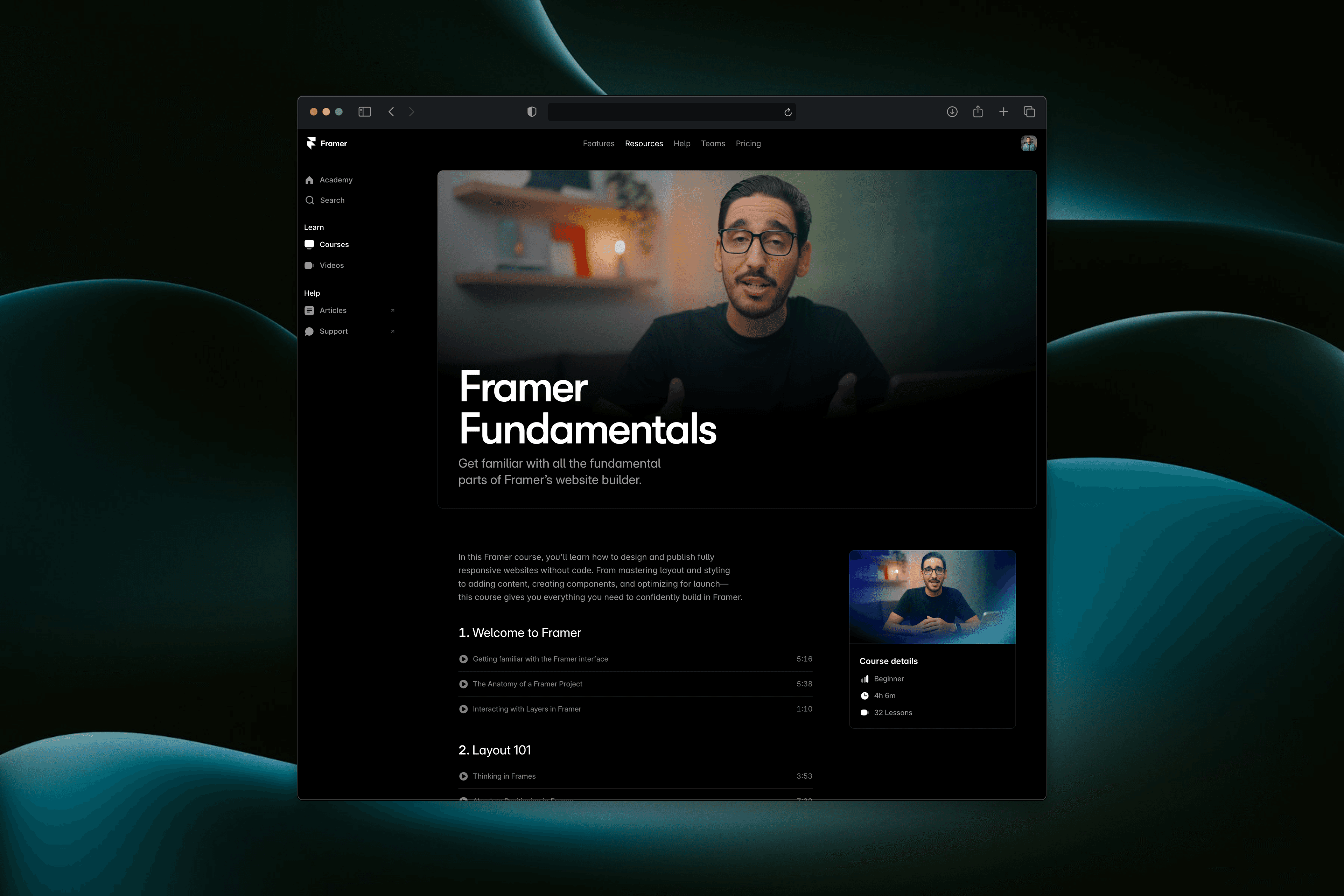 Framer has a steeper initial learning curve than you’d expect, especially around auto-layout concepts and responsive design principles. The right course can save weeks of frustration, and ultimately help you build professional websites much faster.